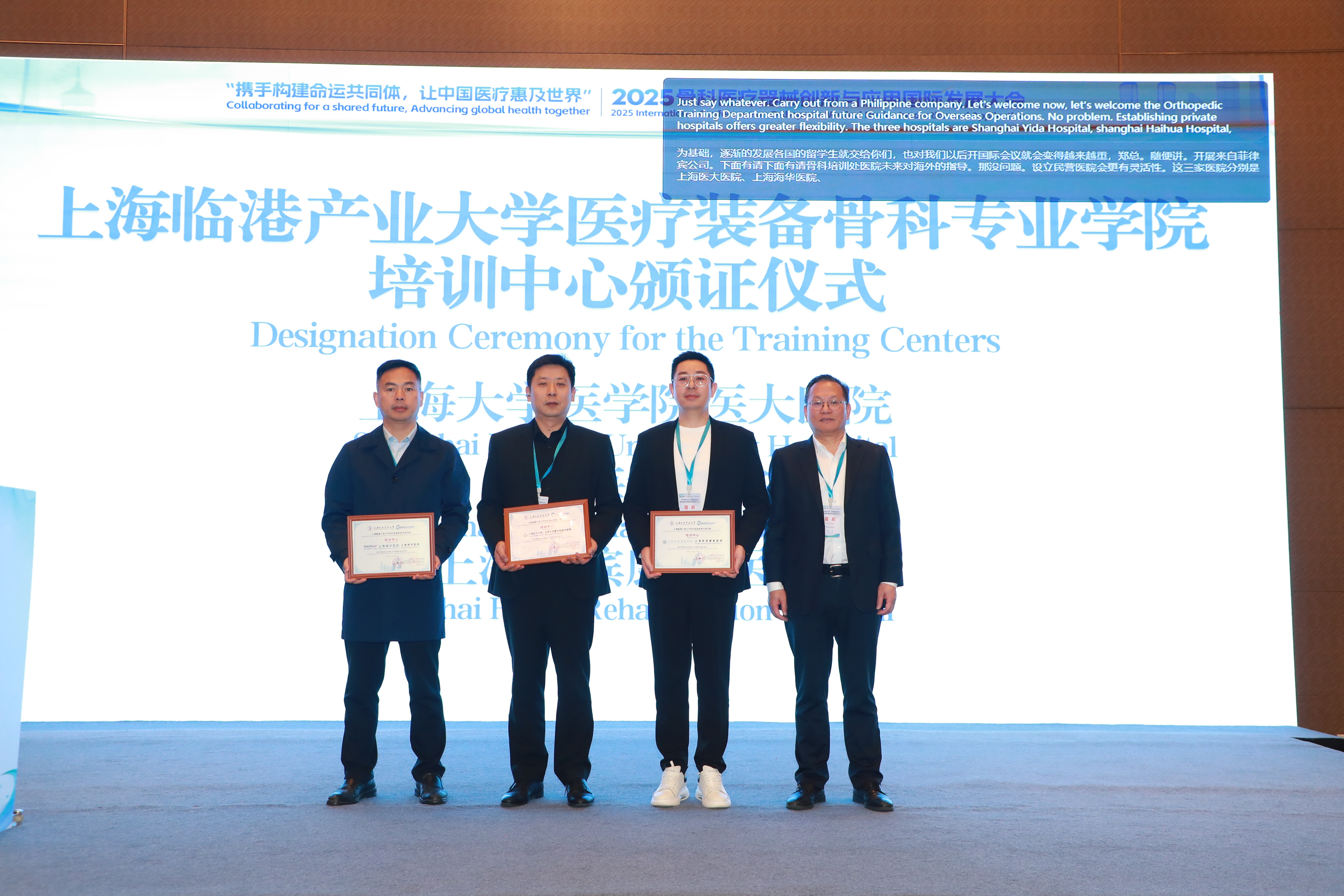 作为大会的重要协办单位,上海医大医院(上海大学医学院医大医院)全程深度参与。开幕式上,医大医院被授予“上海临港产业大学医疗装备骨科专业学院培训中心”;会议期间,手术交流、小针刀技术演示、海外培训基地签约及闭幕式等环节在医大医院举行。