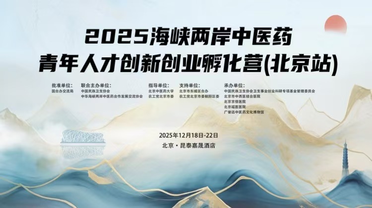 为深化海峡两岸中医药领域交流合作,搭建青年创新创业优质平台,传承弘扬中华优秀传统医药文化,2025海峡两岸中医药青年创新创业孵化营在北京成功举办。本次活动由中国民族卫生协会联合中华海峡两岸中医药合作发展交流协会主办,得到国台办交流局批准,北京中医药大学、农工党北京市委提供指导,北京市东城区台办、农工党北京市委朝阳区委等单位大力支持,吸引了来自台湾、北京、福州等全国各地的 100余位中医药领域师生、企业代表及媒体朋友参与,为期四天的活动内容丰富、成果丰硕,成为两岸青年共话中医药发展的重要桥梁。